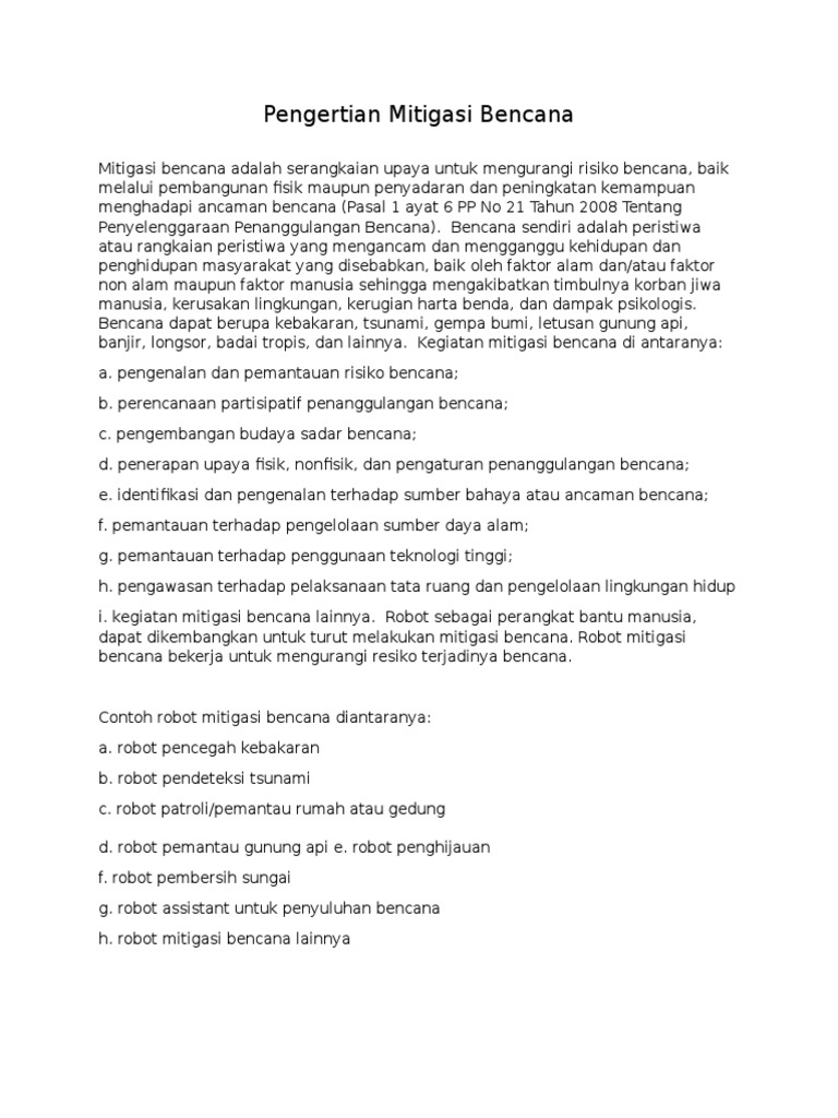 Arti mitigasi adalah suatu upaya yang dilakukan untuk mengurangi/ menghapus kerugian dan korban yang dapat terjadi yaitu dengan cara membuat persiapan. Valitsuse eesmärgiks on maksude osalise ümbersuunamisega nihutada maksukoormus tulu maksustamiselt tarbimise. Definisi / arti kata mitigasi tidak ada di kbbi, kami beri cara munulis yang baik dan benar. Intinya, mitigasi bencana dilakukan buat mengurangi dampak yang diakibatkan oleh terjadinya suatu bencana dari cedera sampai korban jiwa. Dana tersebut digunakan untuk mitigasi bencana seperti pembelian cemara, ketapang, kelapa untuk ditanam di pinggir pantai.